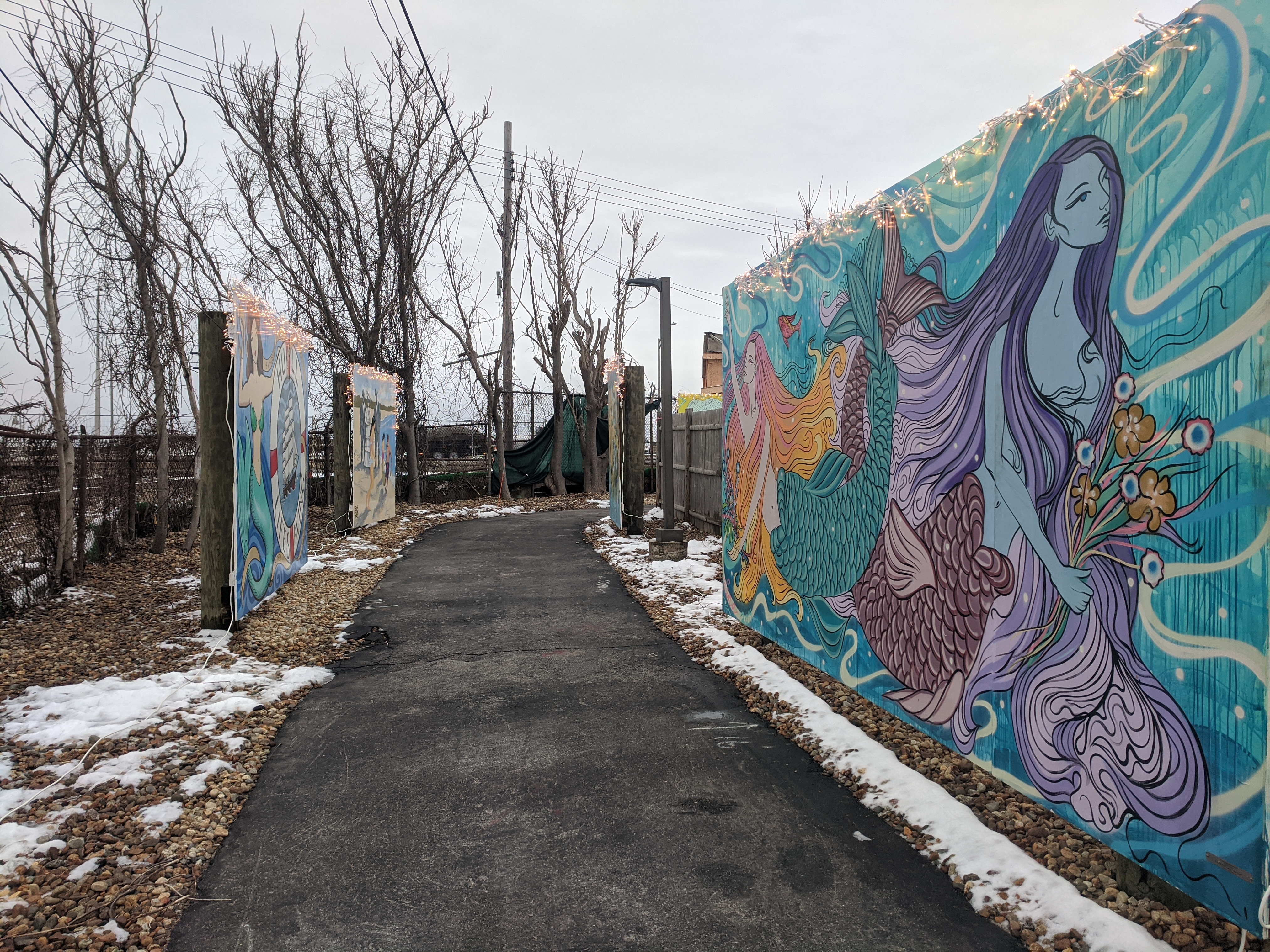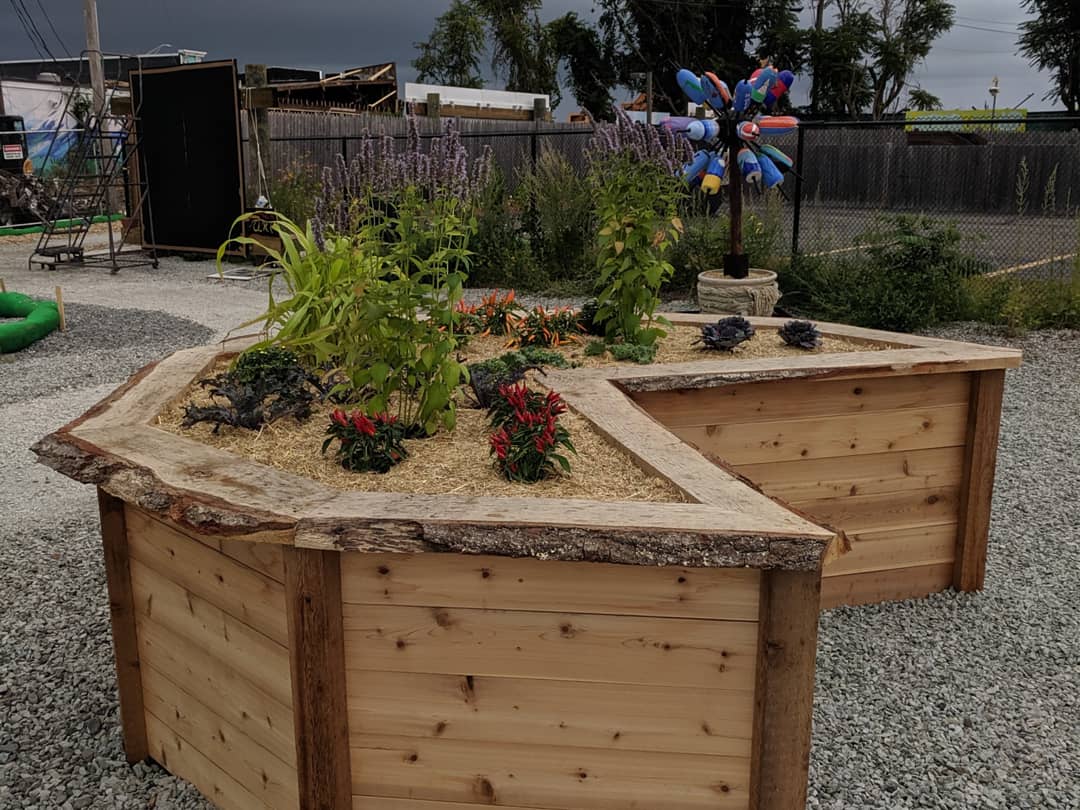 Funds were raised through a Commonwealth Places campaign that offered to give the initiative $25,000 if the public donated the same amount. The fundraising goal was reached near the end of May, mural artists were selected in June and they worked from July 1 through 31. I worked with the community to create 6 buoy star bursts, 3 sculptural garden beds and the art garden space. Some images of the artwalk: