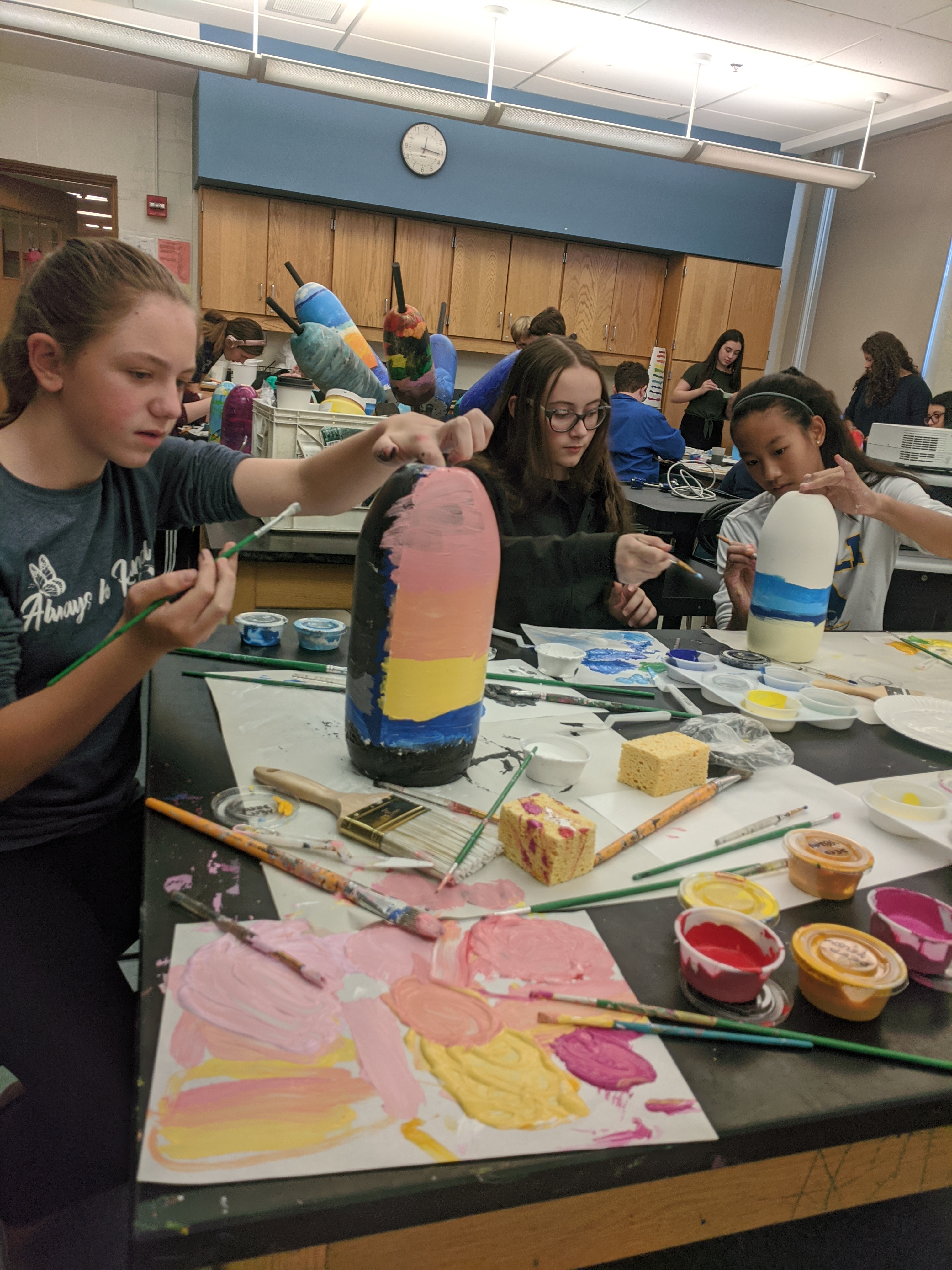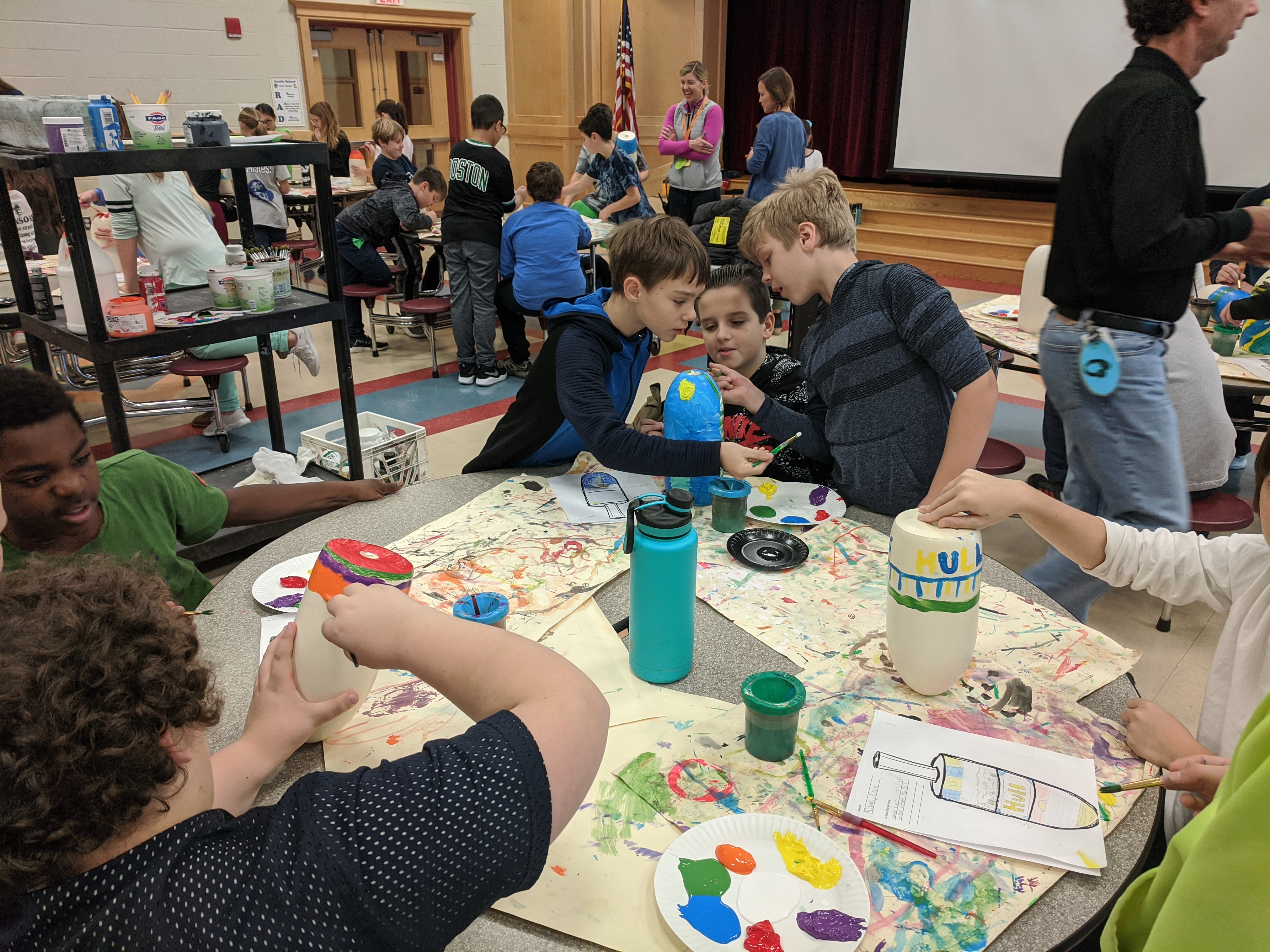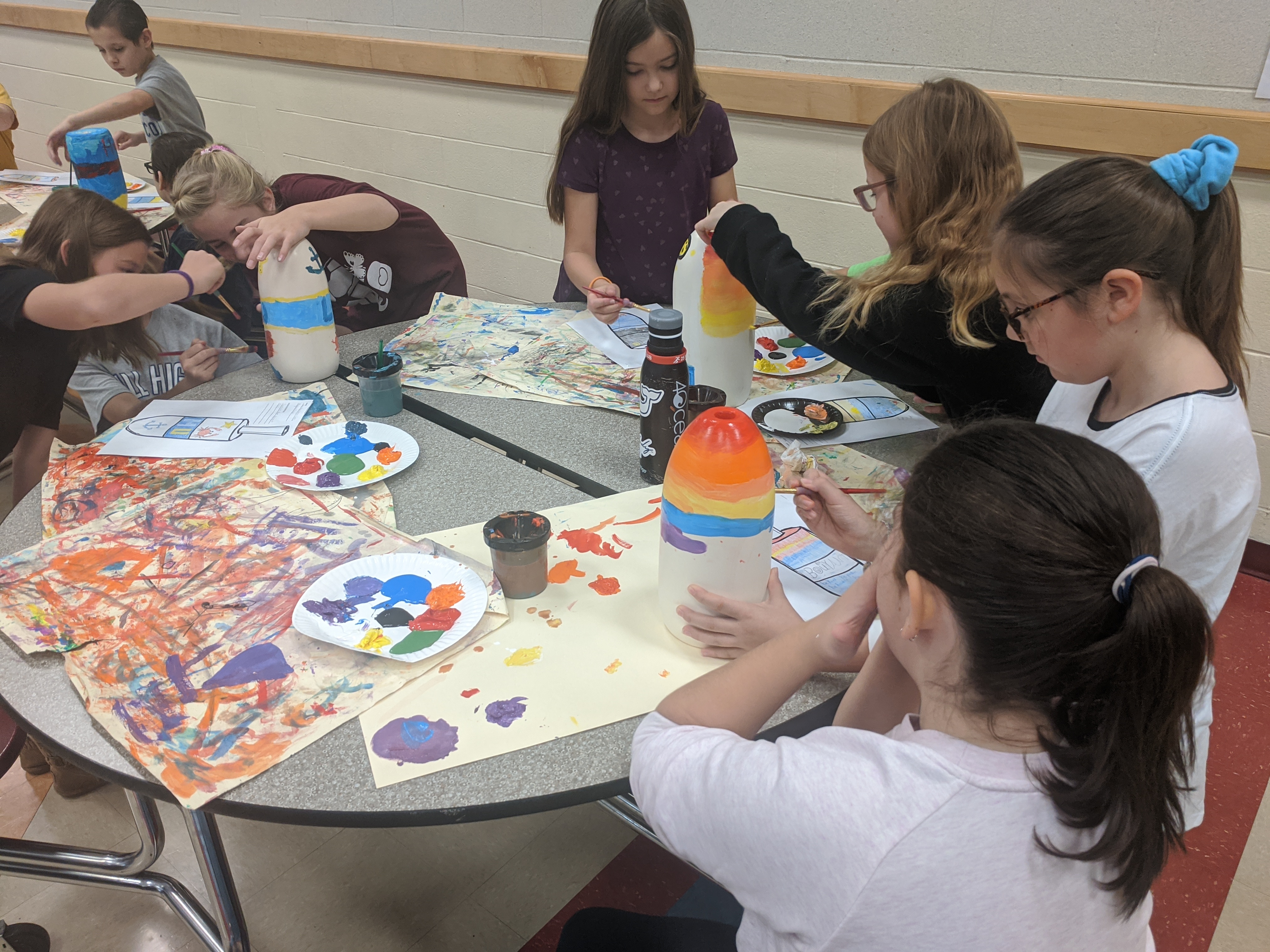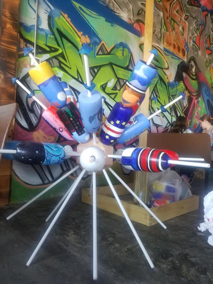 6 buoy starbursts were created in 2019. Contributors included students at Hull High School, Memorial Middle School and The Jacobs Elementary School; 24 buoys were painted at a community event in May, 24 buoys were painted by Hull Artists, and 12 buoys painted by people in the Hull Pride community. Some pics of buoy painting in the middle and elementary schools: