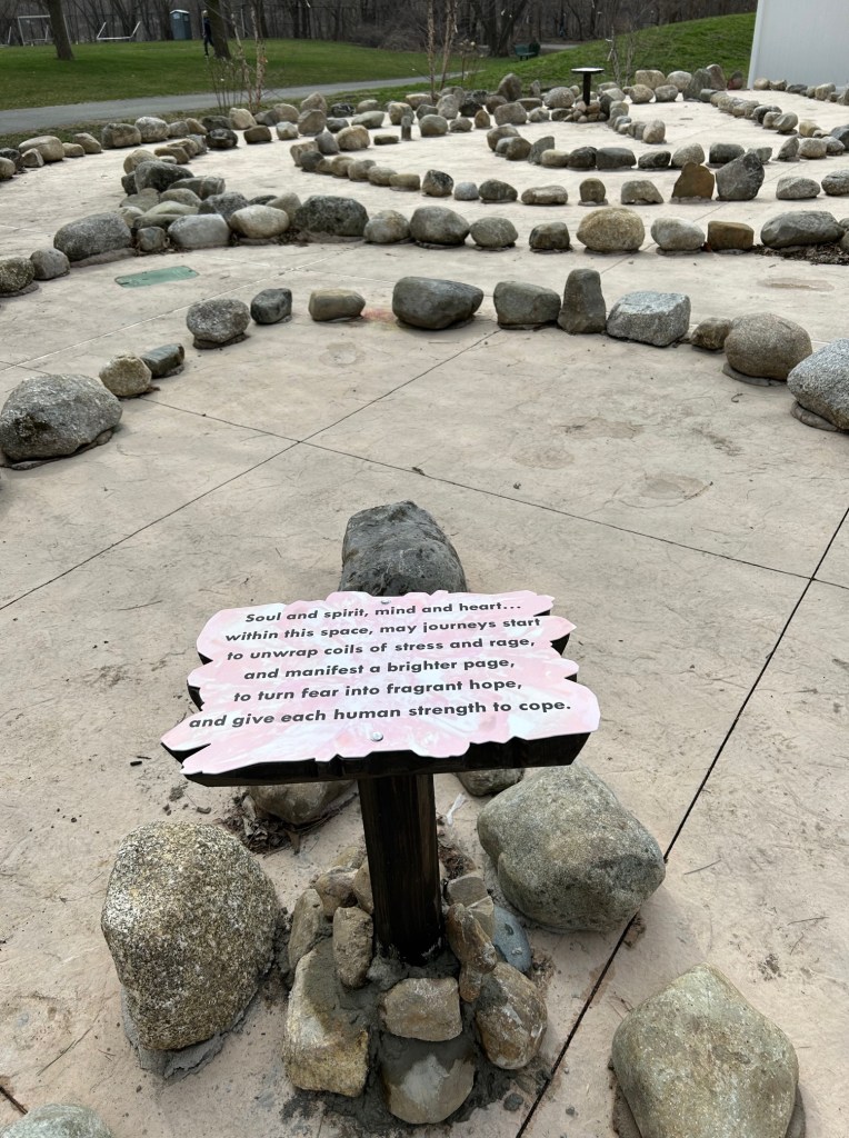 Poetry verses for the three labyrinth placements at the center of each swirl, by Medford Poet Laureate Terry Carter