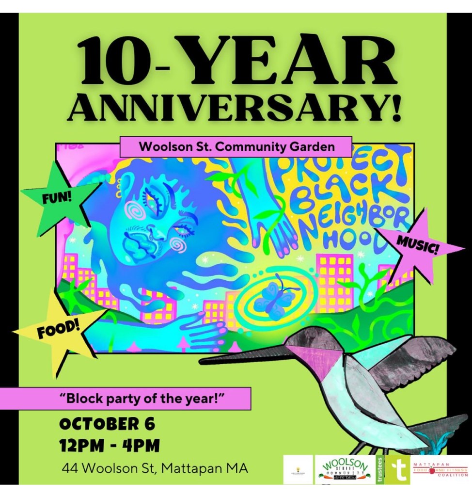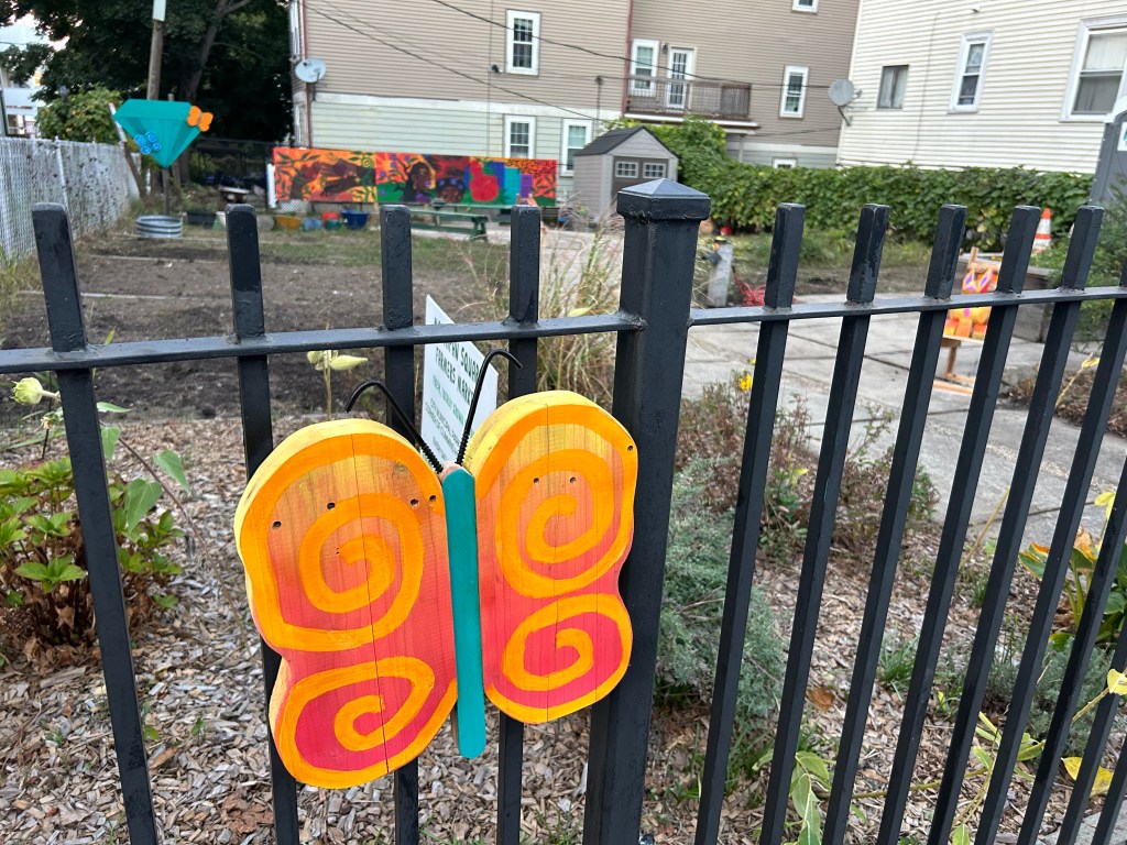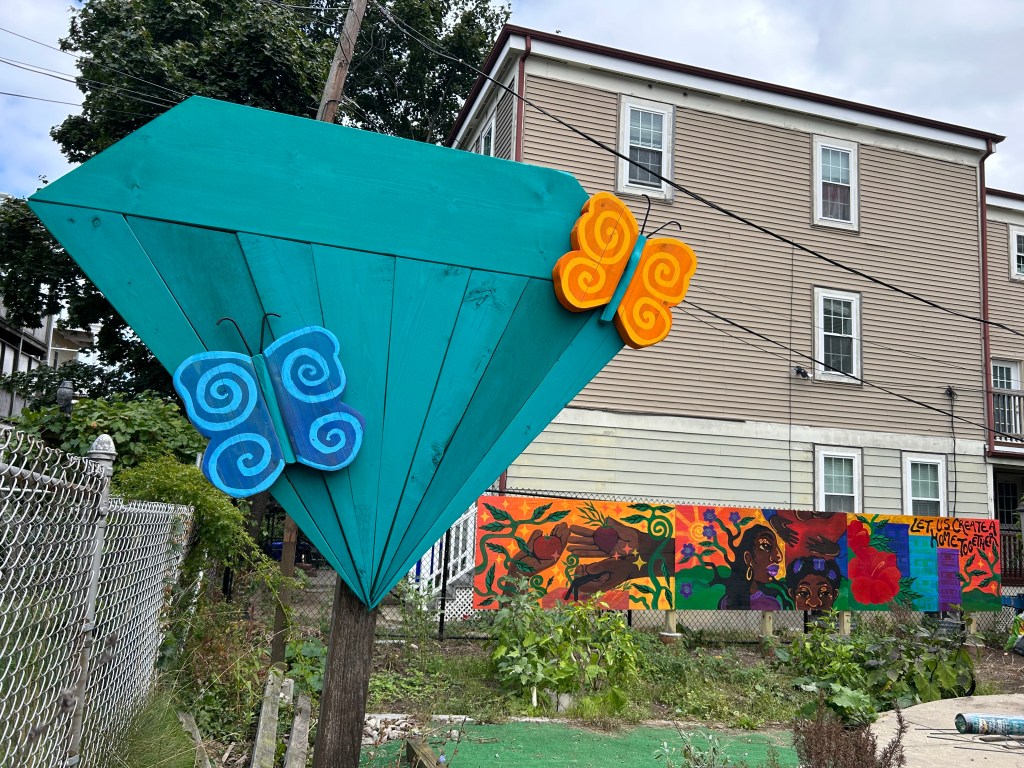 Mithsooka’s mural says “Let us Create a Home Together.” My grandfather was raised right off of Blue Hill Ave in Dorchester until age 13, very close to Mattapan, once very Jewish neighborhoods which shifted due to racist factors such as predatory real estate practices and redlining. Mattapan today has one of the biggest Caribbean and Haitian communities In MA. In the height of violent rhetoric towards Haitian Americans, and with the state of Israel currently perpetuating unimaginable violence towards their neighbors in the Middle East it means a lot to me that in our little pocket of diaspora we are considering how we can create home together, heal what has been broken, and do this work under the leadership of the folx who have been historically marginalized in the setting of a community garden.