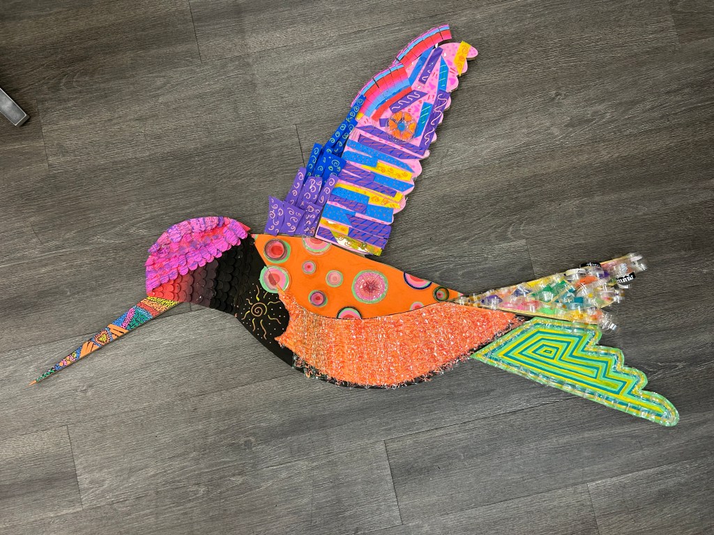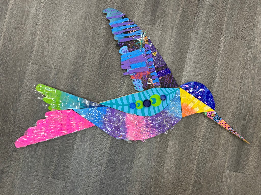 As part of an educational grant with NOAA & National Marine Fisheries Foundation, I was invited by Mystic River Watershed Association to propose a project to raise awareness about ocean plastics & marine debris in Chelsea. I was able to connect with La Colaborativa youth to do a trash cleanup/survey at Island End Park in Chelsea and then incorporate the plastics they found to design and create hummingbird sculptures.